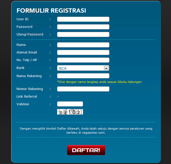 - Isi CAPTCHA dengan angka yang benar sesuai pada yang tampil dimenu daftar anda contoh sebagai berikut :